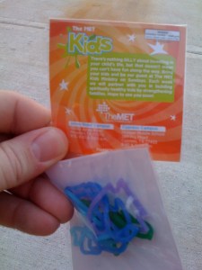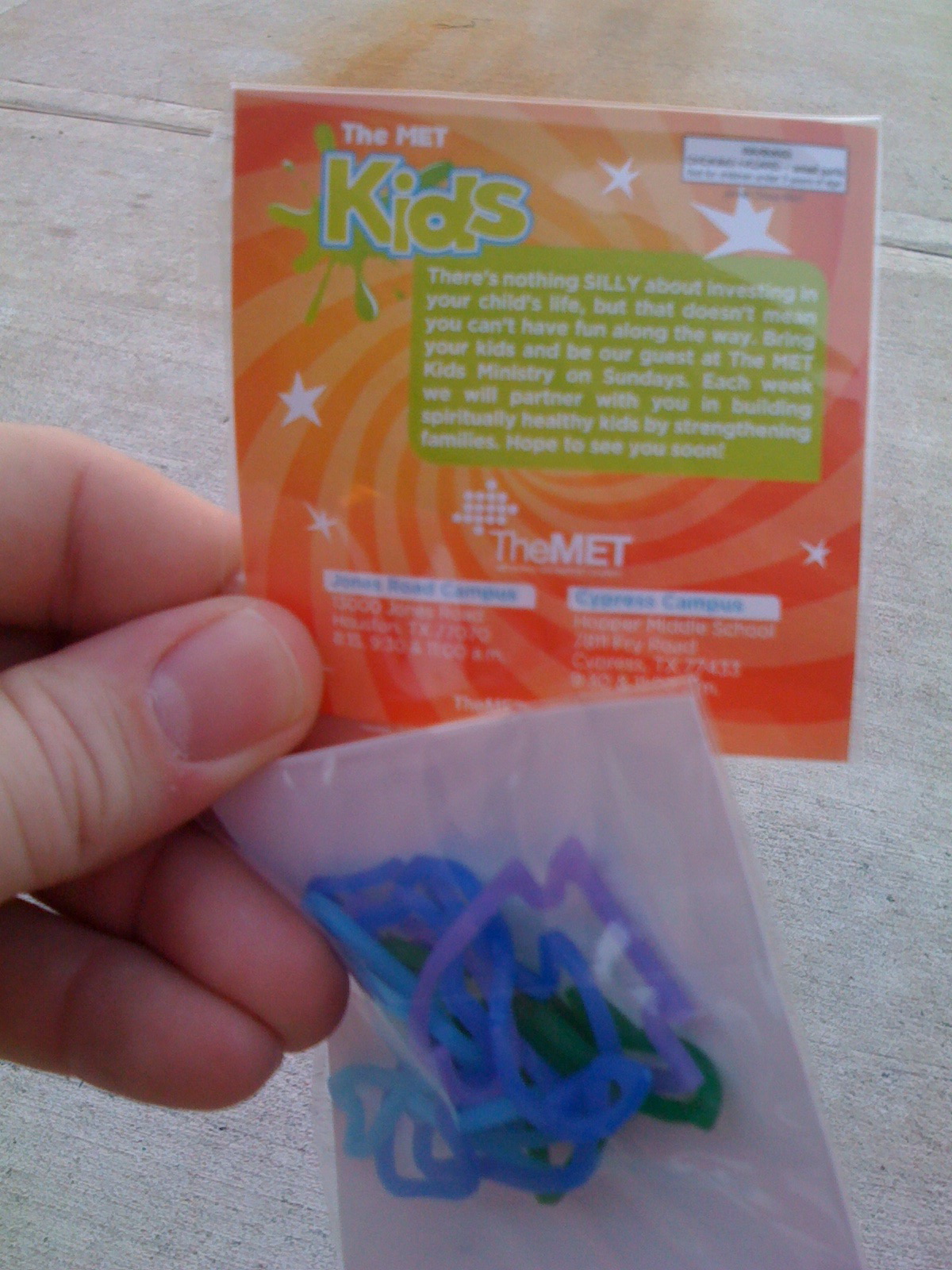 So this year, we armed our campus families with some really fun treats to give away (based on the rubbery shaped bracelets that my kid has a low level addiction to – see photo below), and get the name of The MET out in the community. Instead of worrying about being associated with a pagan holiday, we decided there is no other night when we will talk to most all of our neighbors and have a chance to begin a sacred conversation.